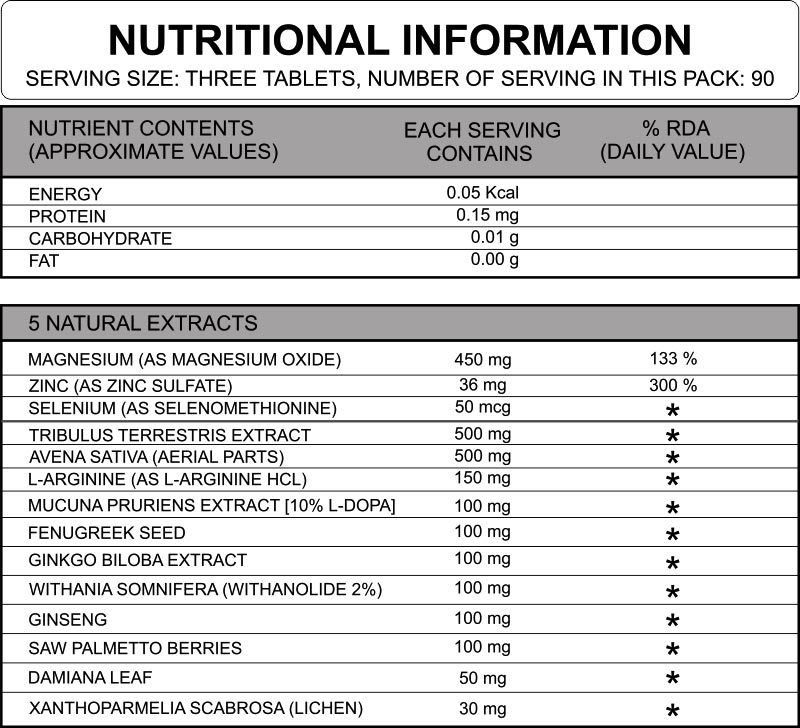 • Avena Sativa - Has the effect of increasing free testosterone levels